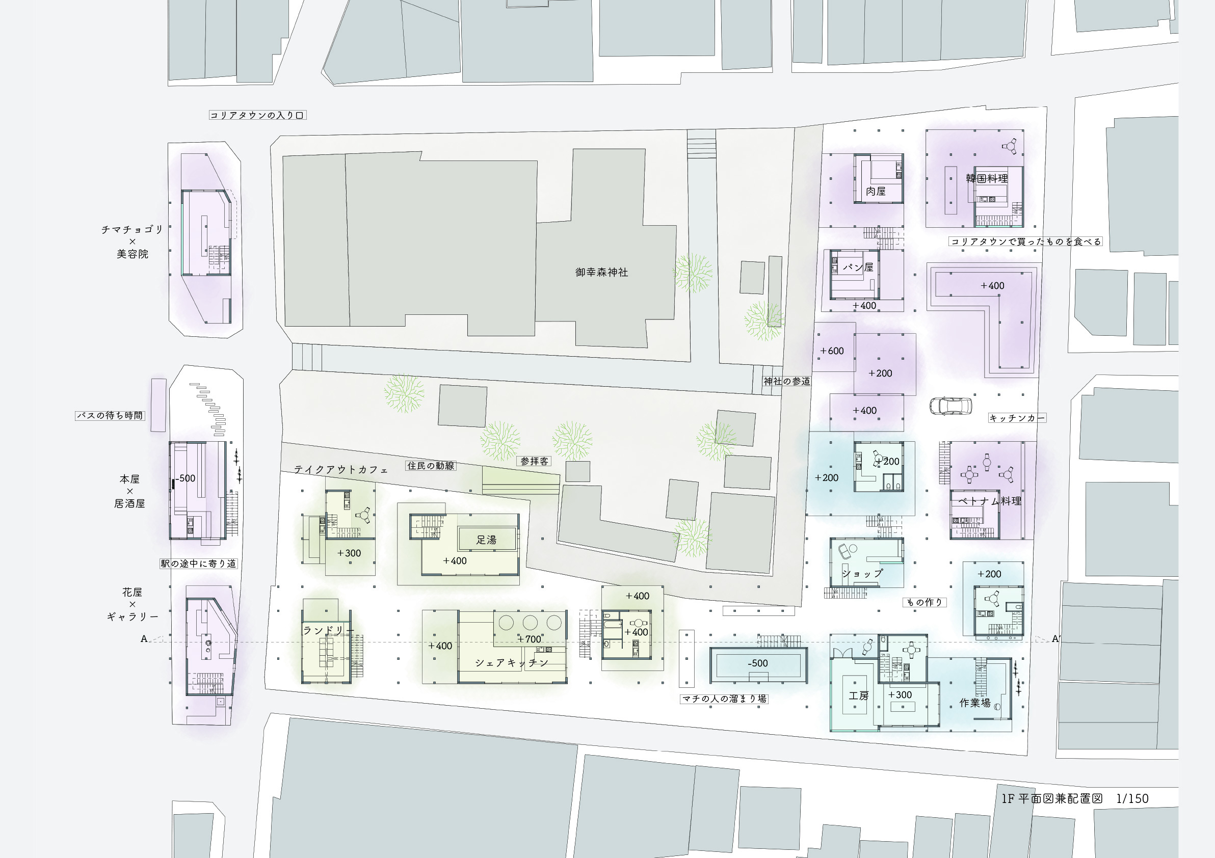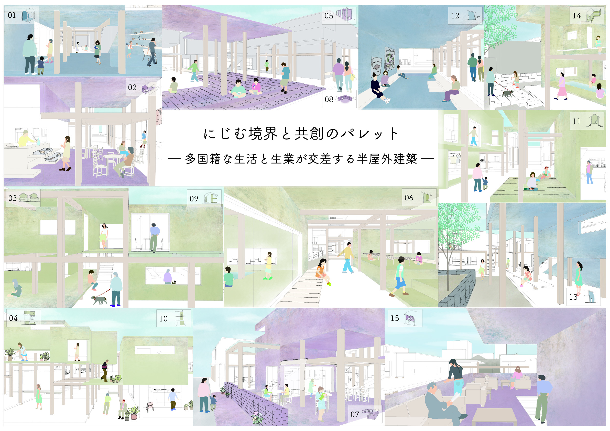 にじむ境界と共創のパレット ― 多国籍な生活と生業が交差する半屋外建築 ― Blurring boundaries and a palette of co-creation