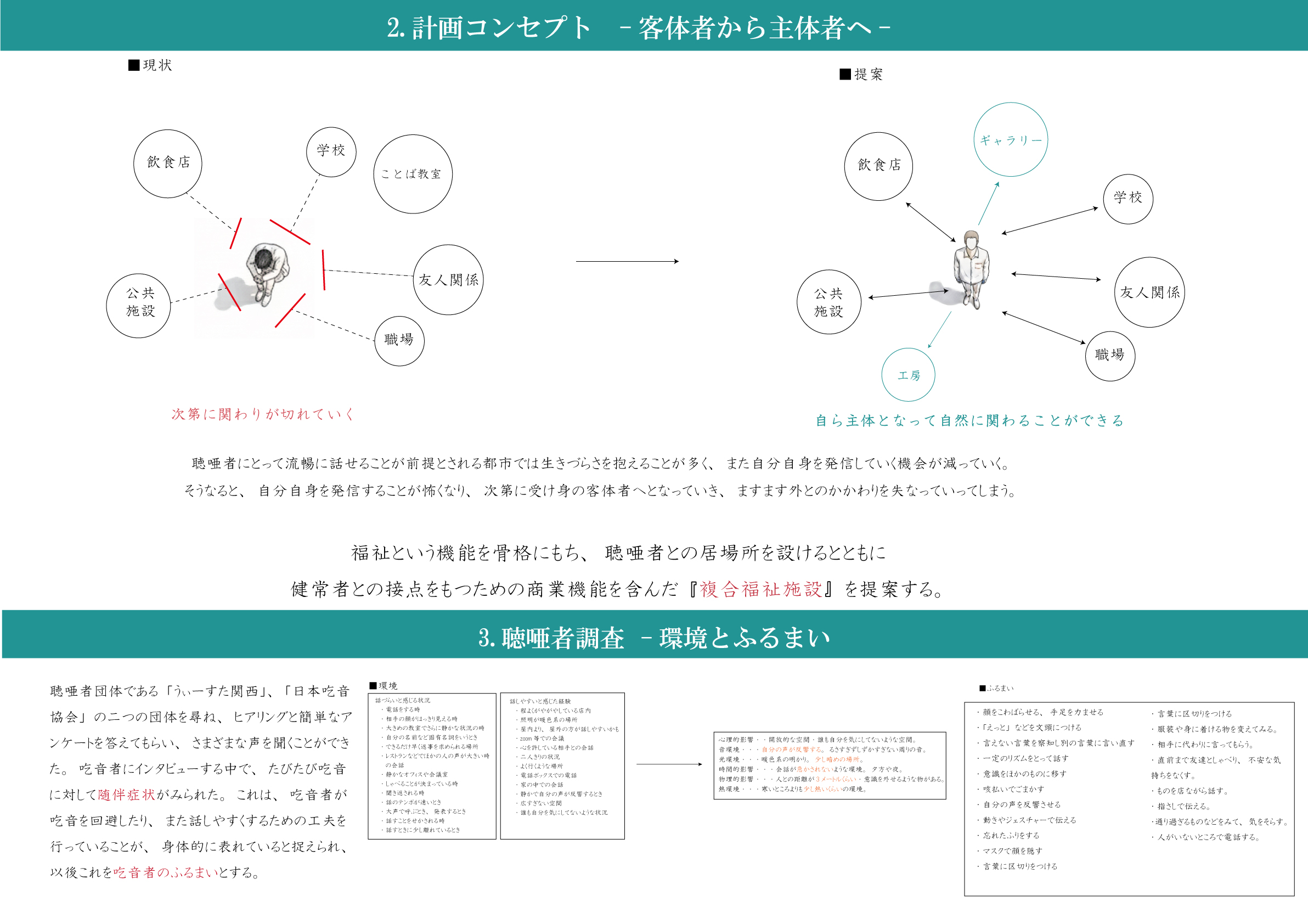 「話したい」という願望があった。彼らにとって、人や社会との関わりしろを持つことができるような建築を提案したい。