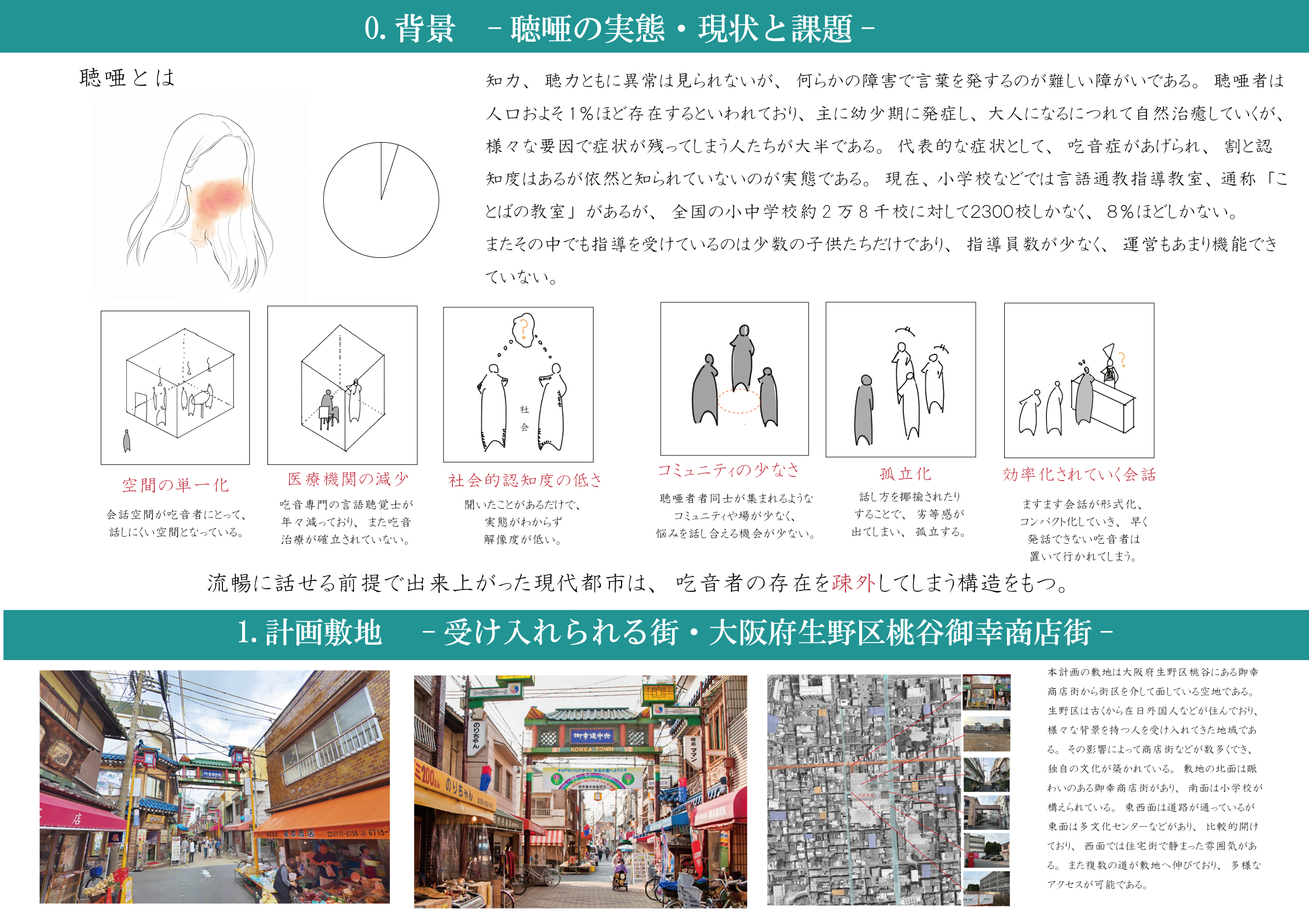 There are people referred to as “chōasha.” They can hear and show no abnormalities in intelligence, but due to certain impairments they have difficulty speaking. They struggle with verbal communication, and stuttering is one part of this spectrum; I myself experienced it in the past. However, at a fundamental level, they have a desire to speak. I would like to propose architecture that enables them to have points of connection with other people and with society.